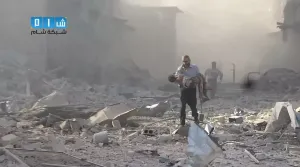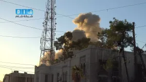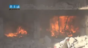 شام ريف دمشق دوما اشتعال الحرائق جراء غارة للطيران الحربي وعملية البحث عن الضحايا 11 9 2014