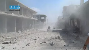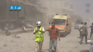 شام ريف ادلب سراقب هرع سيارات الاسعاف الى مكان القصف 1 9 2014