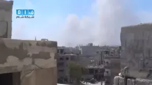 شام دمشق جوبر تصاعد كثيف للدخان جراء القصف العنيف على الحي 31 8 2014