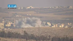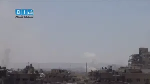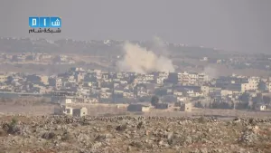 شام ريف ادلب معرة النعمان تصاعد الدخان جراء استهداف المدينة بصواريخ ارض ارض 29 8 2014