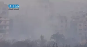 شام ريف ادلب معرة النعمان تصاعد الدخان جراء القصف بالبراميل المتفجرة 29 8 2014