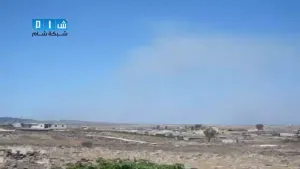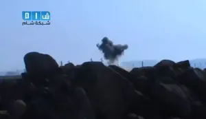 مراسل شبكة شام في ريف حمص أبو أسامة الحمصي رصد سقوط احدى القذائف عند الخط الاول امام عناصر الجيش الحر اثناء الاشتباكات مع قوات النظام في مدينة الحولة 26 8 2014