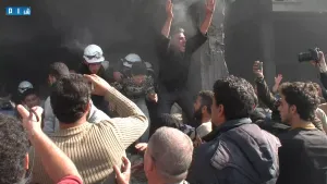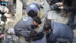 وقامت عناصر الدفاع المدني بالتوجه لمكان القصف ونقل الجرحى للمشافي الطبية، كما قامت بإخماد الحرائق الناجمة عن استهداف المدينة بالنابالم الحارق.