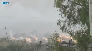 شنت طائرات العدو الروسي غارات جوية مستخدمتاً القنابل المحرمة دولياً "الفوسفور" على حي كفرداعل سقط على أثرها جرحى بين المدنيين واحتراق بعض المنشآت الصناعية والأراضي الزراعية