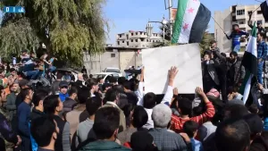 يصر أهالي الغوطة الشرقية في ريف دمشق على مطالبهم التي تدعوا إلى نبذ الخلافات بين الفصائل العسكرية ورفع الحواجز بين المدن والبلدات وتشكيل كيان عسكري موحد ، وخرج اليوم بعد صلاة الجمعة مئات المتظاهرين يطالبون الفصائل بالإصغاء إلى مطالبهم.