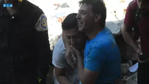 وسارعت فرق الدفاع المدني وطواقم الإسعاف في المدينة لإسعاف الضحايا للمشافي الطبية، فيما تعمل على رفع أنقاض مبنى مدمر فوق رؤوس ساكنيه وسط السوق.