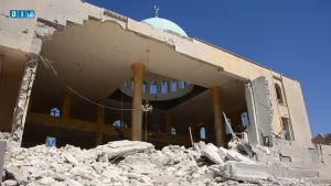 لأول مرة منذ بناء مسجد فاطمة الزهراء في مدينة بنش بريف إدلب لم تقم به صلاة الجمعة بعد أن تم تدمير أجزاء منه بغارات جوية روسية استهدفت المدنية