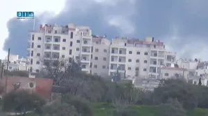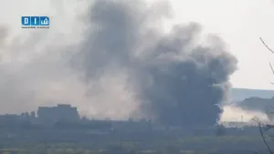 ادلب الدخان المتصاعد من الجهة الغربية للمدينة جراء المعارك العنيفة
