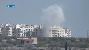 ادلب تصاعد الدخان من أطراف المدينة جراء الإشتباكات العنيفة