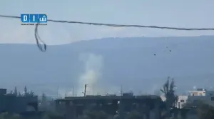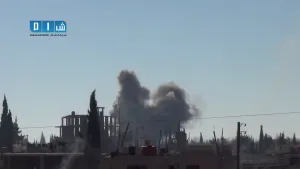 شام دمشق المادنية تصاعد الدخان جراء قصف استهداف المنطقة 24 12 2014