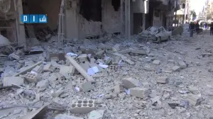 حمص الحولة اثار الدمار جراء غارة الطيران المروحي بالبراميل المتفجرة 24 12 2014