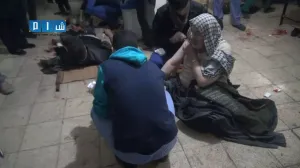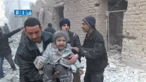 اسعاف الجرحى بعد غارة الطيران الحربي على مدينة دوما