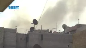 ريف دمشق دوما تصاعد الدخان جراء غارات الطيران التي استهدافت المدينة 13 11 2014