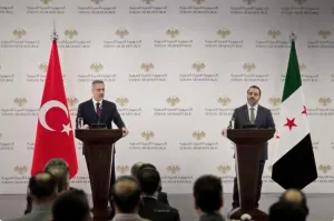 ويأتي هذا المؤتمر الصحفي عقب وصول وفد تركي رفيع المستوى إلى دمشق، ضم وزير الخارجية هاكان فيدان، ووزير الدفاع يشار غولر، ورئيس جهاز الاستخبارات إبراهيم قالن، في إطار زيارة رسمية تعكس تنامياً في مستوى التنسيق السياسي والأمني بين البلدين، في ظل مرحلة إقليمية بالغة الحساسية.