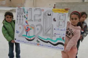 كما انتشرت صوراً أخرى أظهرت أطفالاً يرفعون رسومات يبدو أنهم أعدّوها بأنفسهم، تحمل علم سوريا الحر. بدا عليهم الفرح والفخر بهذه الأعمال الصغيرة التي عبّرت عن حبهم لوطنهم وارتباطهم بالذكرى.
