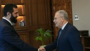 استقبل الرئيس أحمد الشرع، يوم الخميس في دمشق، نائب رئيس الحكومة اللبنانية طارق متري، في زيارة رسمية بحث خلالها الجانبان مجموعة من الملفات الثنائية، وفي مقدمتها قضايا المفقودين وضبط الحدود والتعاون الأمني والقضائي.
