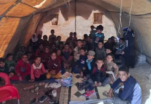 انتشرت مؤخراً على منصات التواصل الاجتماعي صورة مؤثرة لمجموعة من الطلاب وهم يتلقون دروسهم داخل خيمة قديمة تفتقر لأبسط مقومات التعليم؛ لا مقاعد يجلسون عليها، ولا تجهيزات مدرسية، حيث افترشوا حصيراً فوق أرضٍ ترابية.