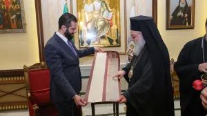 من جهته، رحّب البطريرك يوحنا العاشر بالرئيس الشرع في رحاب الكنيسة المريمية، مشيداً بما تمثّله الزيارة من رسالة وطنية جامعة تعبّر عن روح التآخي والتكامل بين أبناء الوطن الواحد، ومؤكداً أن أبناء الكنيسة سيظلون أوفياء لوطنهم ومشاركين في إعادة إعمار سوريا.