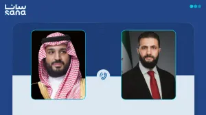 تلقى اليوم الأمير محمد بن سلمان بن عبدالعزيز آل سعود ولي العهد في المملكة العربية السعودية، اتصالًا هاتفيًا من فخامة الرئيس أحمد الشرع رئيس الجمهورية العربية السورية،