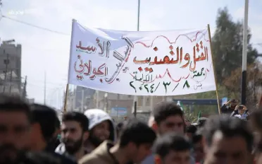 رفعوا راية الثورة السورية ... متظاهرون في "جاسم" يطالبون بإسقاط الأسد والإفراج عن المعتقلين