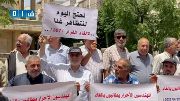 احتجاجات لنقابة المهندسين الأحرار في إدلب لمطالبة حكومة الإنقاذ بإسقاط القرار 307