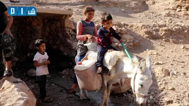 الحمير وسيلة نقل بدائية لنقل مياه الشرب من نبع حميمات إلى قرى ريف إدلب