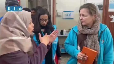 جانب من زيارة وفد أممي لمدينة حارم بريف إدلب الغربي لمعاينة مناطق الزلزال المدمر شمال غربي سوريا