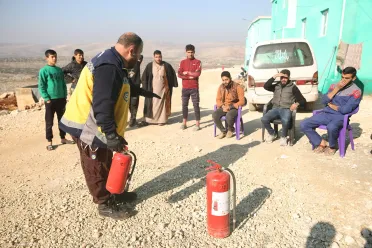"الخوذ البيضاء" تجري حملات توعية تدريب للمدنيين لتجنب أضرار الحرائق خلال الشتاء