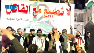 مظاهرة مسائية في مدينة إدلب تنديداً بتطبيع #السعودية مع نظام الأسد المج رم #سوريا #السعودية