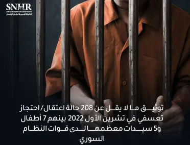 تقرير حقوقي يوثق 208 حالة اعتقال تعسفي في تشرين الأول 2022