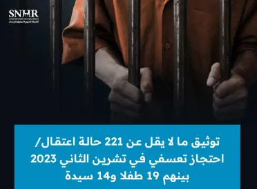 تقرير لـ "الشبكة السورية" يوثق 221 حالة اعتقال في تشرين الثاني 2023