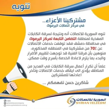 عطل فني يوقف عددًا من دارات الاتصالات.. والشركة السورية توضح