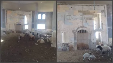 بعد قصفه وتهجير سكان القرية.. النظام يُحول مسجداً لـ "حظيرة أغنام" بريف حماة