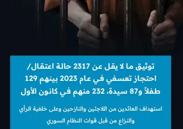 مسجلاً "2317 حالة".. تقرير لـ "الشبكة السورية" يوثق حصائل الاعتقال في سوريا عام 2023
