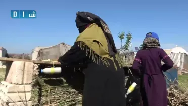 صمود عائلة نازحة من ريف حماة الشرقي في صناعة حصر القصب للبقاء على قيد الحياة