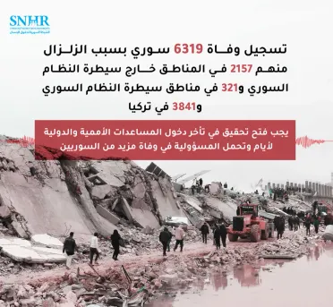 غالبيتهم في إدلب وشمال حلب ... الشبكة السورية تصدر حصيلة لضحايا الزلزال