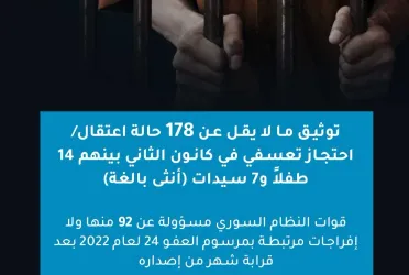 تقرير لـ "الشبكة السورية" يوثق 178 حالة اعتقال في كانون الثاني 2023