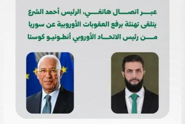 رئيس الاتحاد الأوروبي يُهنئ "الشرع" هاتفياً برفع العقوبات ويبحث تعزيز التعاون والاستثمار