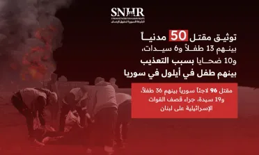 تقرير حقوقي يوثق مقـ ـتل 50 مدنياً في سوريا خلال شهر أيلول 2024
