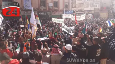 آلاف المحتجين يتظاهرون في ساحة الكرامة وسط مدينة السويداء