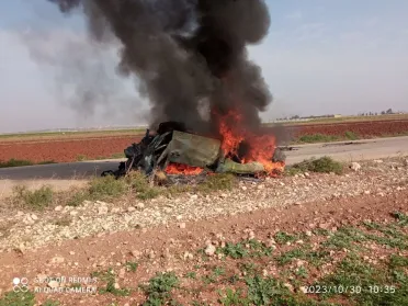 شهـ ـيد ممرض وجرحى أحدهم طبيب باستهداف النظام سيارة بصاروخ قرب بنش بإدلب