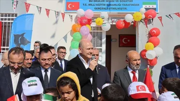 وزير الداخلية التركي يزور بلدة "الراعي" شمالي حلب ويشارك في افتتاح مدرسة