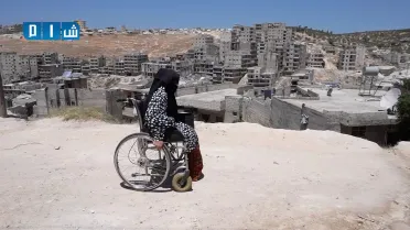 نازحة سورية تحمل وطأة الإصابة والإعاقة بسبب قصف طيران نظام الأسد