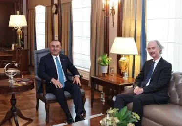 "أوغلو" يؤكد لـ "بيدرسون" الدعم التركي للقرار 2254 والعملية السياسية واللجنة الدستورية