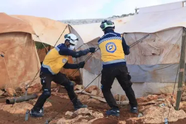 الخوذ البيضاء: طفلان جريحان و تضرر عشرات الخيم إثر عاصفة شمال غربي سوريا