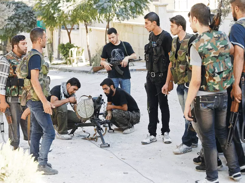 ولم تعد قبضة النظام وحلوله العسكرية وحدها تخيف السوريين الهاربين الباحثين عن ملجأ أو مأمن، فقد باتت بعض فرق المعارضة المسلحة مصدر رعب وخوف مماثل مع خروجها عن أهداف الشعب البسيطة المتمثلة في (الحرية والكرامة وبناء دولة ديمقراطية، كما كانت تعلن شعارات الثورة) فقد ظهرت الكتائب الإسلاموية المتطرفة بشعارات باعدت بينها وبين مطالب الشعب، وباتت تبحث عن تطبيق الشريعة حسب فهمها المنحرف، هذا فضلاً عن ظهور «داعش» المريب وإعلانه «الخلافة» المزعومة وقيامه بقطع الرؤوس بحد السيف وتهجيره بعض الأقليات، مما استدعى قيام تحالف دولي لمكافحة الإرهاب يعلن أنه بحاجة إلى عشر سنين كي ينهي حروبه، وتوجهت كل الأنظار إلى «داعش» وأخواتها، وتم إهمال الملايين من الشعب المشرد، الذي بات عليه أن يعاني مأساته الفجائعية إلى أجل غير مسمى.
