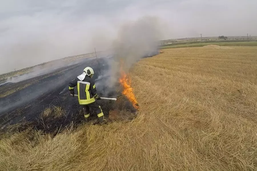 حرائق كبيرة تلتهم محاصيل القمح والشعير في بداية الجهة الشرقية لناحية عين عيسى على الطريق الواصل منها إلى مدينة الرقة، وامتد الحريق من منطقة خربة علاية وصولاً إلى تل خنزير ما أدى لإحراق ما يقارب الـ 50 هكتاراً.