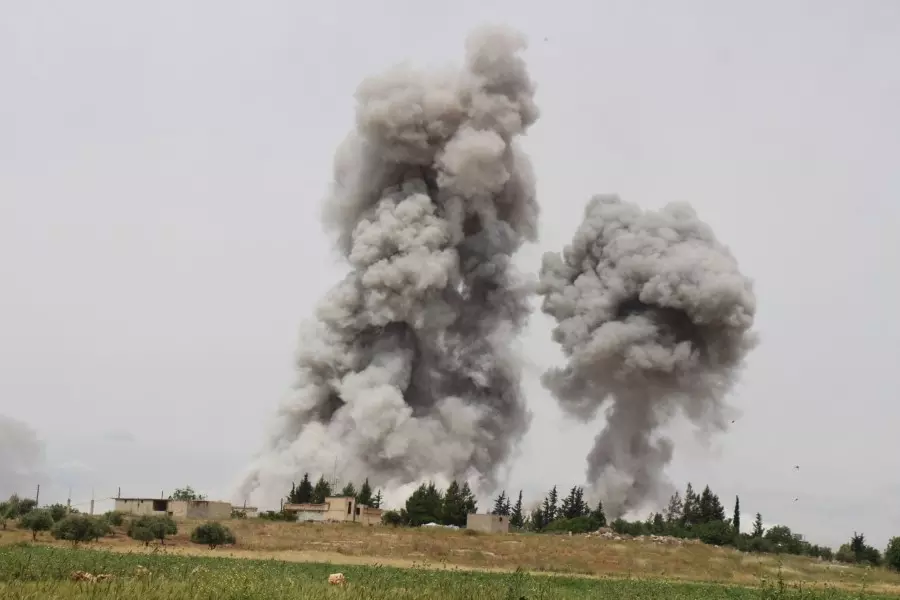 شنت الطائرات الحربية والمروحية الروسية والأسدية غارات جوية ترافقت مع قصف مدفعي وصاروخي عنيف على مدن وبلدات الحواش والسرمانية والعنكاوي وقسطون ودوير الكراد واللطامنة، ما أدى لسقوط جرحى في صفوف المدنيين.