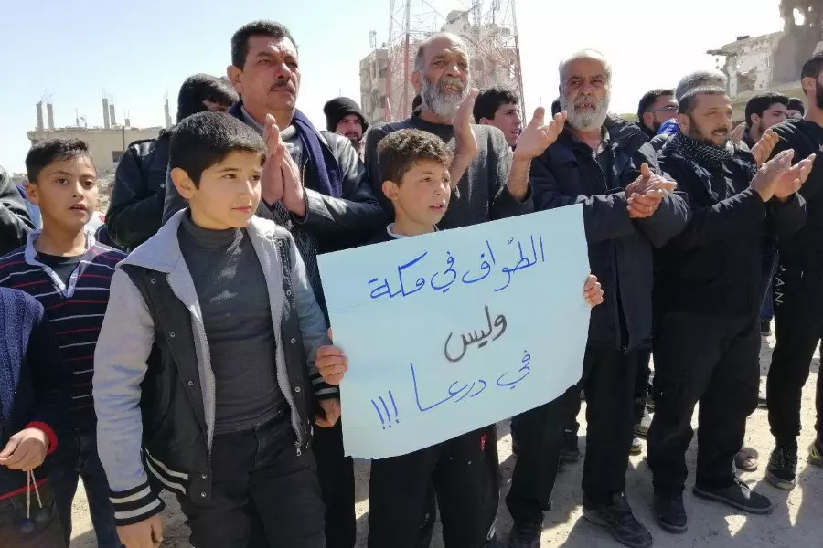 خرجت مظاهرة في منطقة البلد بمدينة درعا جابت الشوارع مطالبة بإسقاط نظام الأسد، ونددت بإعادة نصب تمثال حافظ الأسد إلى درعا المحطة، كما خرجت مسيرة مؤيدة لنظام الأسد في منطقة المحطة نصب خلالها التمثال،، حيث استدعى النظام طلاب المدارس وموظفي الدولة إلى المسيرة، التي شارك فيها عدد قليل من الناس المجبرين على ذلك، ولكنها لم تدم إلا أقل من ساعة حيث أطلق أحد عناصر الأسد النار في الهواء ما سبب حالة من الذعر والهلع وتم فض المسيرة.
