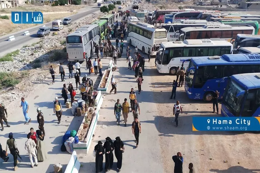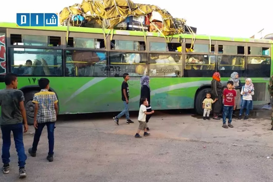 دخلت 10 حافلات إلى قرية أم باطنة بريف القنيطرة الجنوبي لبدء نقل الرافضين للتسوية من ريف درعا الشمالي الغربي وريف القنيطرة باتجاه محافظة إدلب، بما في ذلك عناصر هيئة تحرير الشام.